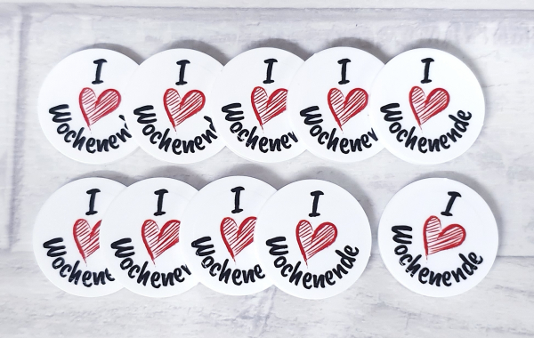 Einkaufswagenchip: "I love Wochenende!"