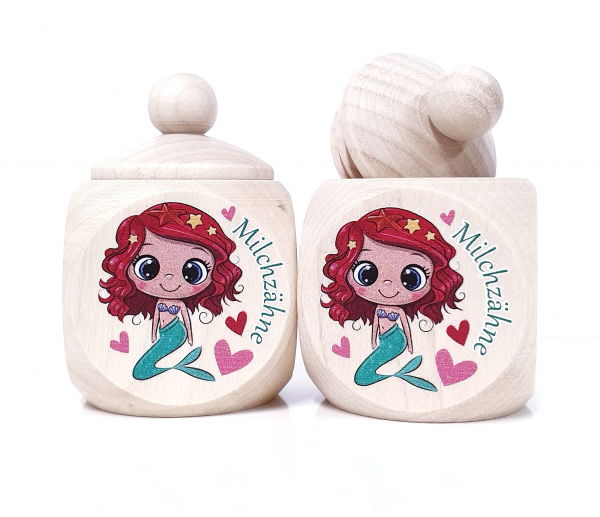Holzdose einseitig mit dem abgebildeten Motiv bedruckt (Deckel mit Schraubverschluss).