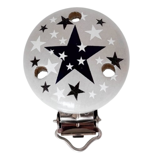 Schnullerkettenclip hellgrau Stern, viele Sterne